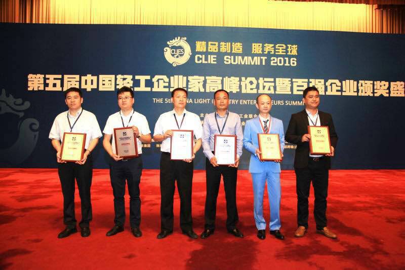 6月15日,由中国轻工业联合会主办、中国轻工业信息中心承办,以“精品制造、服务全球”为主题的第五届中国轻工企业家高峰论坛暨百强企业颁奖盛典在北京京西宾馆隆重召开。